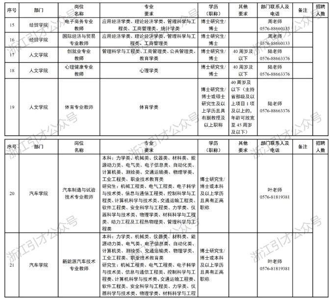 地址:浙江省台州市学院路788号台州职业技术学院人事处;