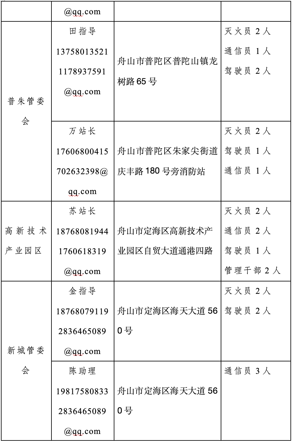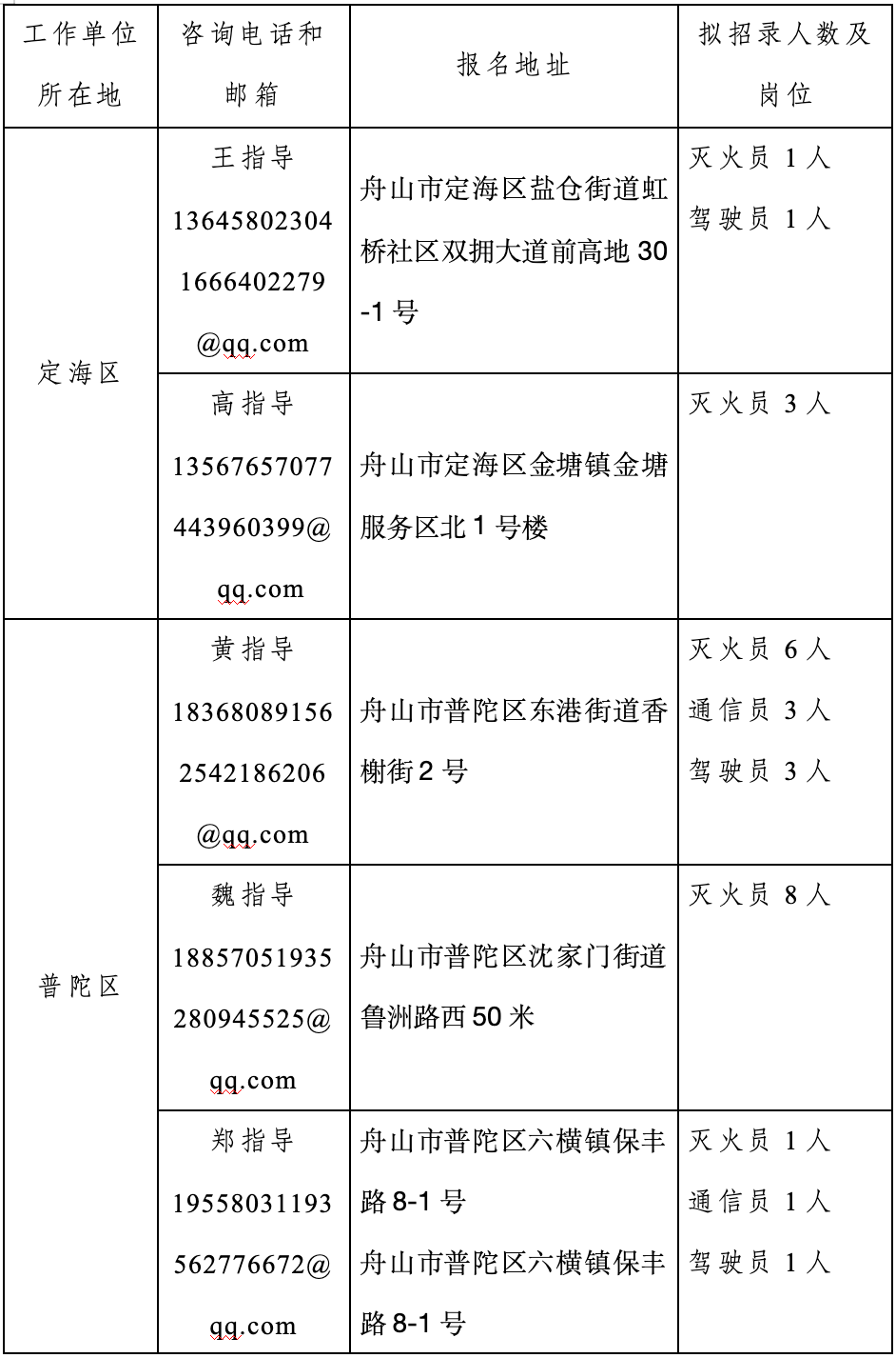 3.舟山市政府专职消防员招聘报名点负责人及联系方式。