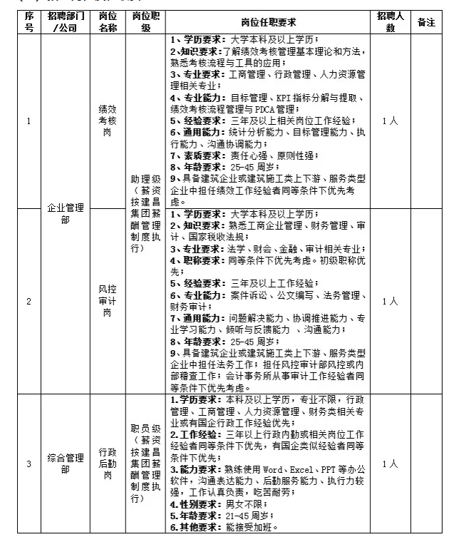 因江西赣江新区建昌资产运营集团有限公司发展需要,特面向社会公开招聘工作人员5名,现将有关事项公告如下: