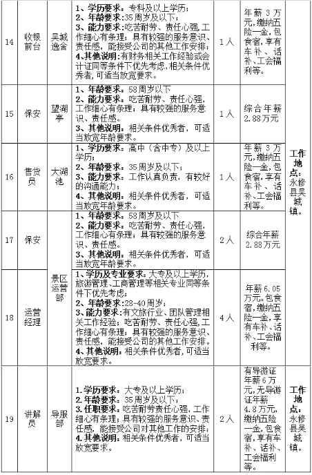 因永修吴城候鸟小镇旅游运营管理有限公司发展需要,决定面向社会公开招聘26名劳务派遣制工作人员,现将有关事项公告如下:
