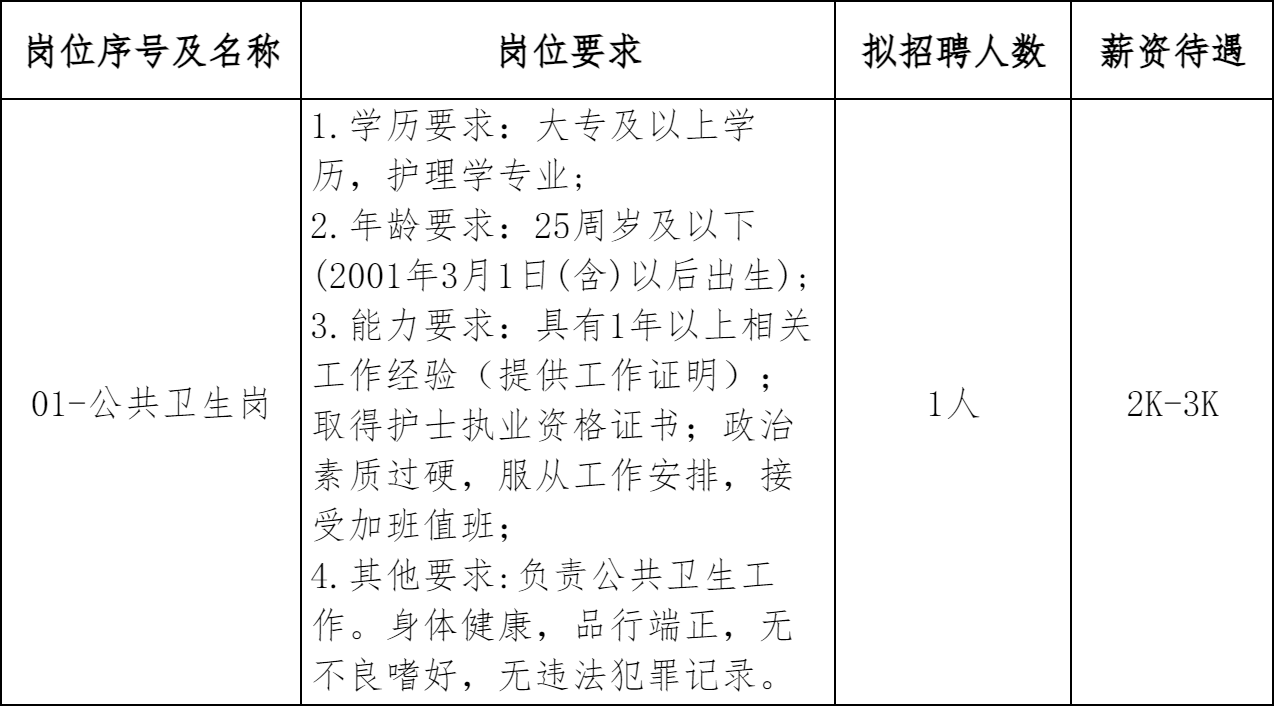 本次公开招聘计划招录1人,具体岗位及要求详见《2026年井冈山市柏露乡卫生院招聘岗位及任职要求》(附件1)。