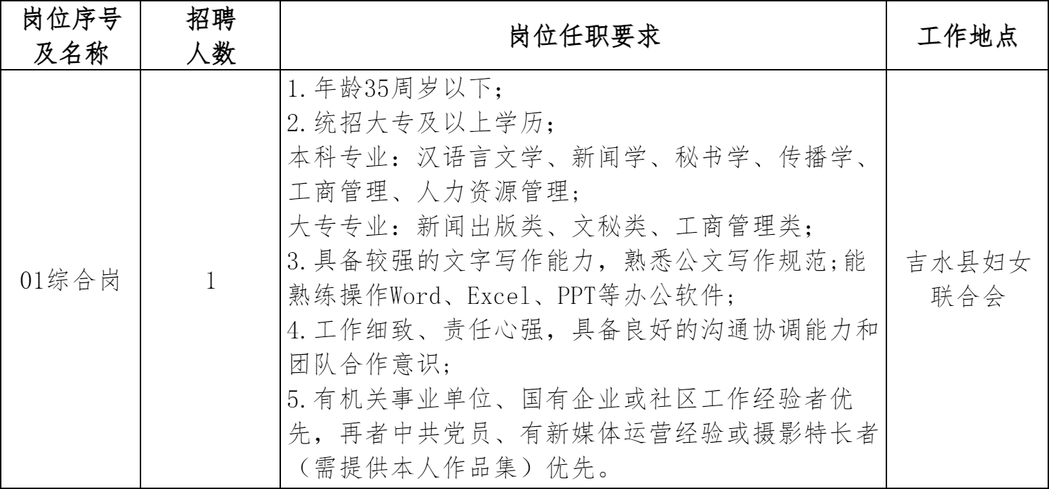吉水县妇女联合会2026年面向社会公开招聘1名综合岗的公告