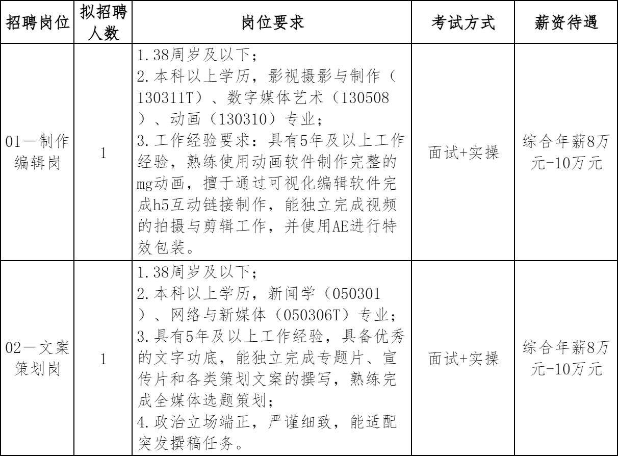 本次计划招聘2名正式员工,详见附件《吉安市银屏文化传媒有限公司2026年公开招聘岗位及任职要求》。本次招聘年龄计算方法为:38周岁及以下是指1987年4月1日(含)以后出生。招聘职位要求的学历、工作经历的计算截止时间为2026年4月1日(含)。特别优秀者经研究决定后可适当放宽条件。