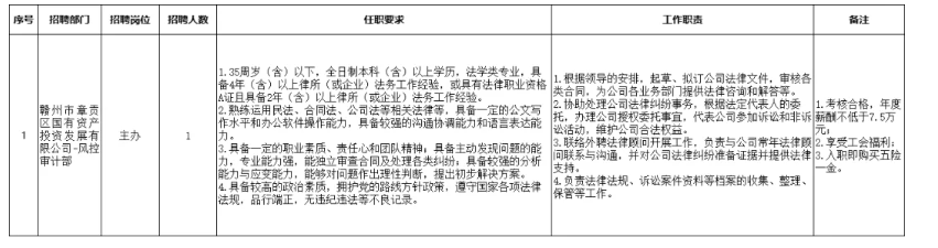 本次公开招聘1名正式员工,具体招聘岗位详情如下: