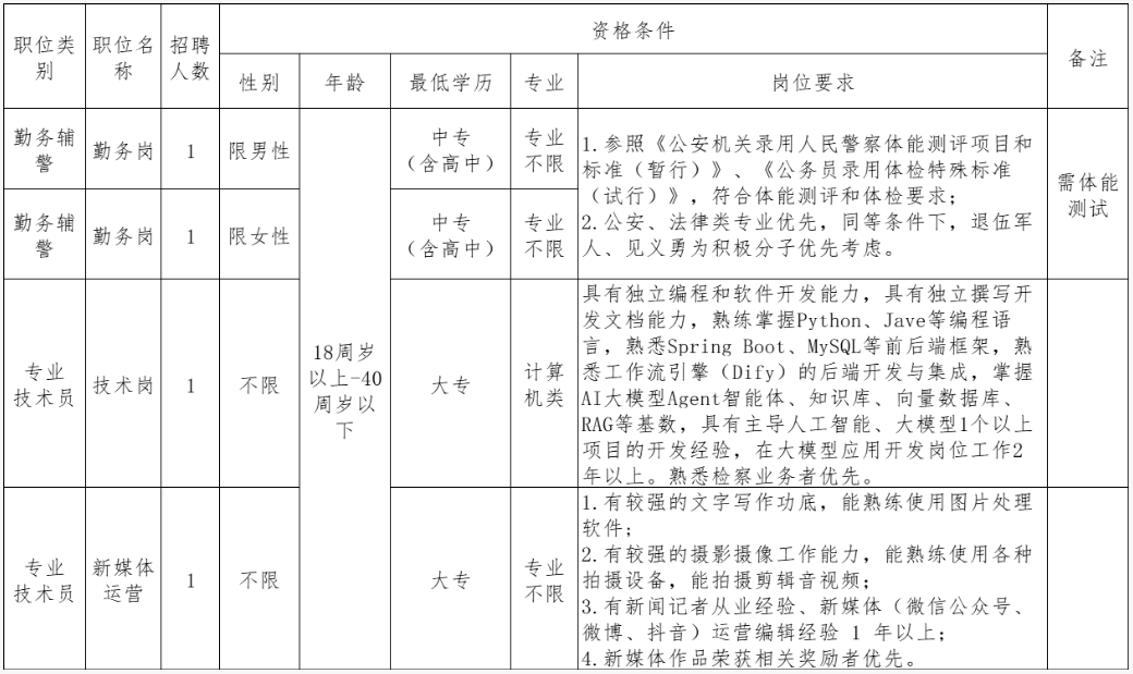 因工作需要,吉安市人民检察院需招聘编外工作人员4名,现将有关招聘要求公示如下: