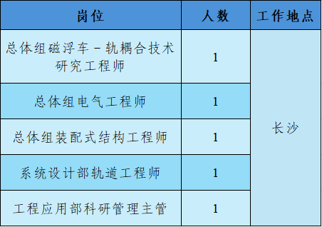 本次共计划招聘人数5人,招聘岗位及资格标准条件详见《湖南省磁浮技术研究中心公开招聘岗位信息表》(附件1)。