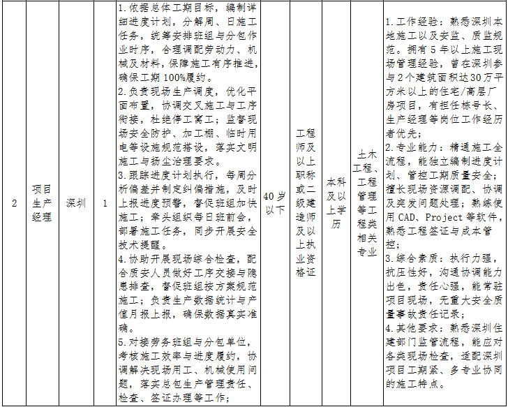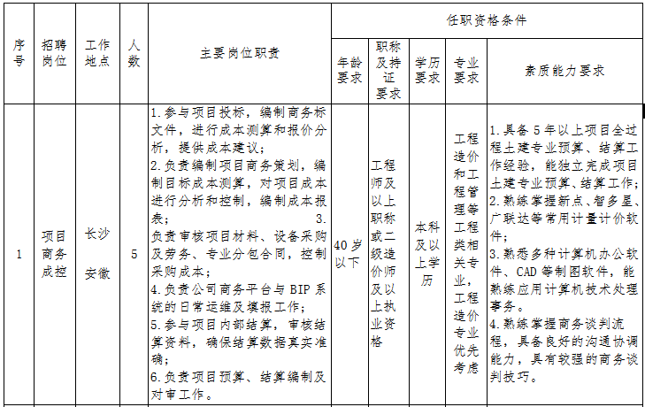 湖南省第四工程有限公司是湖南建设投资集团有限责任公司下属的全资子公司,成立于1958年8月,注册资本金15亿元,年经营产值近300亿元、年施工(生产)能力200亿元。现因业务发展及项目生产经营需求,公司面向集团内部及社会公开招聘项目商务成控(5名)、生产管理人员(1名),具体要求如下: