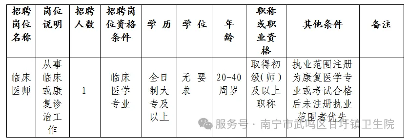 南宁市武鸣区甘圩镇卫生院2026年第一次公开招聘编外工作人员公告