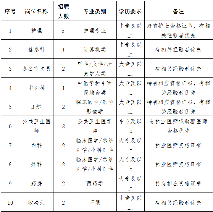 忠门镇中心卫生院编外人员招聘21人公告