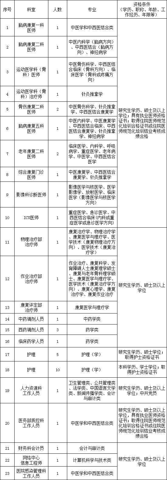 因工作需要,福建中医药大学附属康复医院特向社会公开招聘编外工作人员40名,现将具体招聘方案公布如下:
