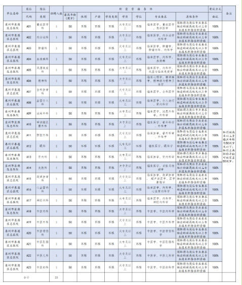 因工作需要,泉州市泉港区总医院拟招聘副高级职称以上医师(非在编)23名,具体岗位及条件详见附件: