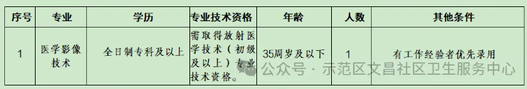 4、本次招聘所涉及到的相关信息将通过示范区文昌社区卫生服务中心微信公众号发布。