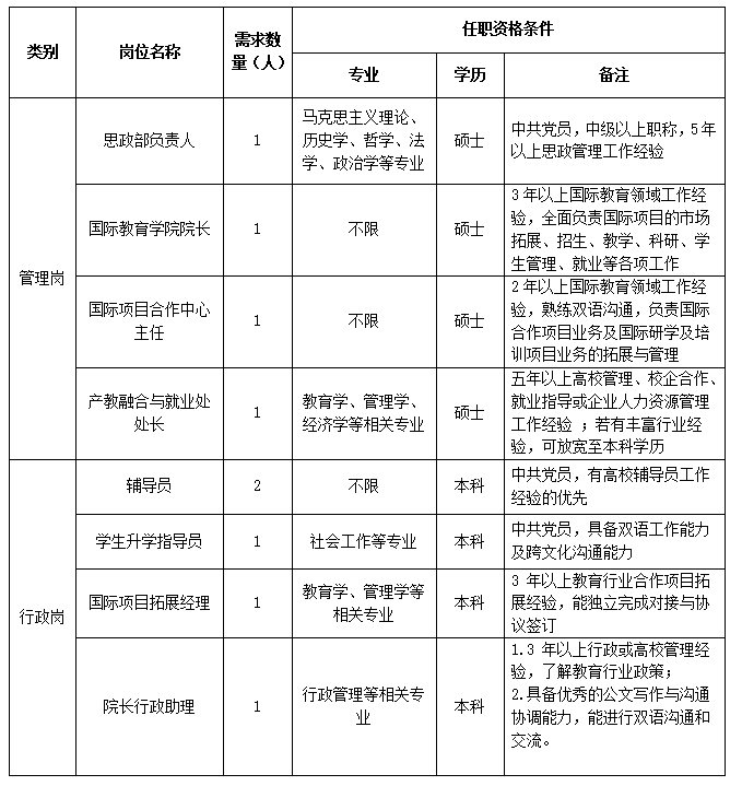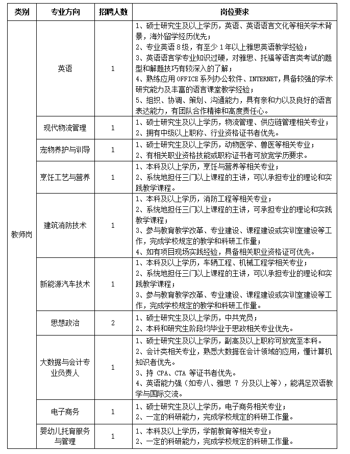 1、招聘条件:硕士及以上学历,中级以上职称或三年以上相关企业工作经验且具有相关职业资格技能证书,可放宽学历要求。