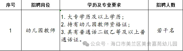 海口市美兰区美舍嘉苑幼儿园招聘教师岗位公告