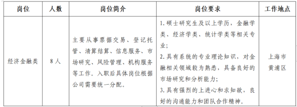 上海票据交易所股份有限公司(以下简称上海票据交易所)为中国人民银行所属企业,系金融基础设施运营机构,是具备票据交易、登记托管、清算结算、信息服务多功能的全国统一票据交易平台,2016年12月8日开业运营。根据工作需要,现组织开展2026年度校园招聘工作,有关事项公告如下:
