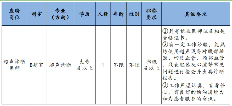 未央区医学院社区卫生服务中心超声医师招聘公告