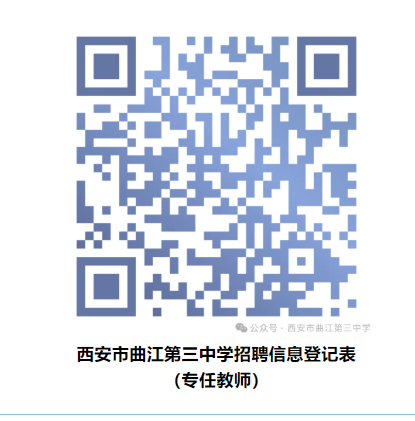 1.扫描二维码,在线如实填写《西安市曲江第三中学招聘信息登记表(专任教师)》。