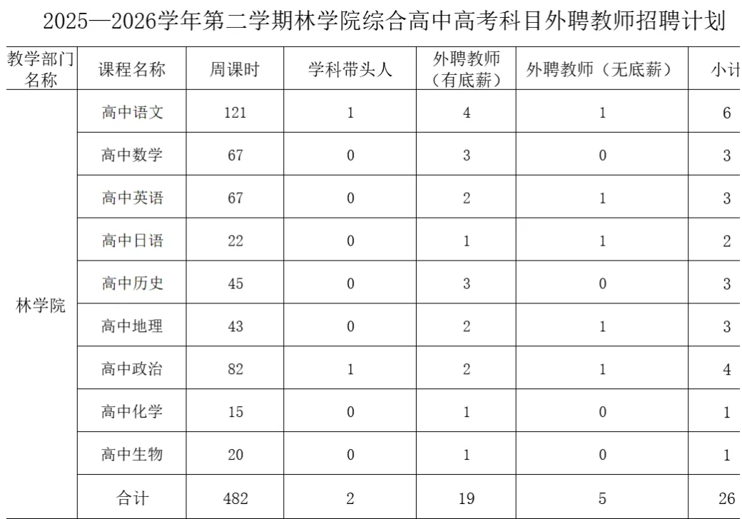 榆林职业技术学院林学院(综合高中)2026年春季临聘教师招聘公告