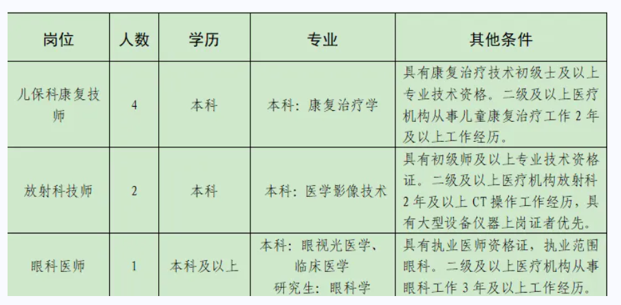 儿保科康复技师4名、放射科技师2名、眼科医师1名。