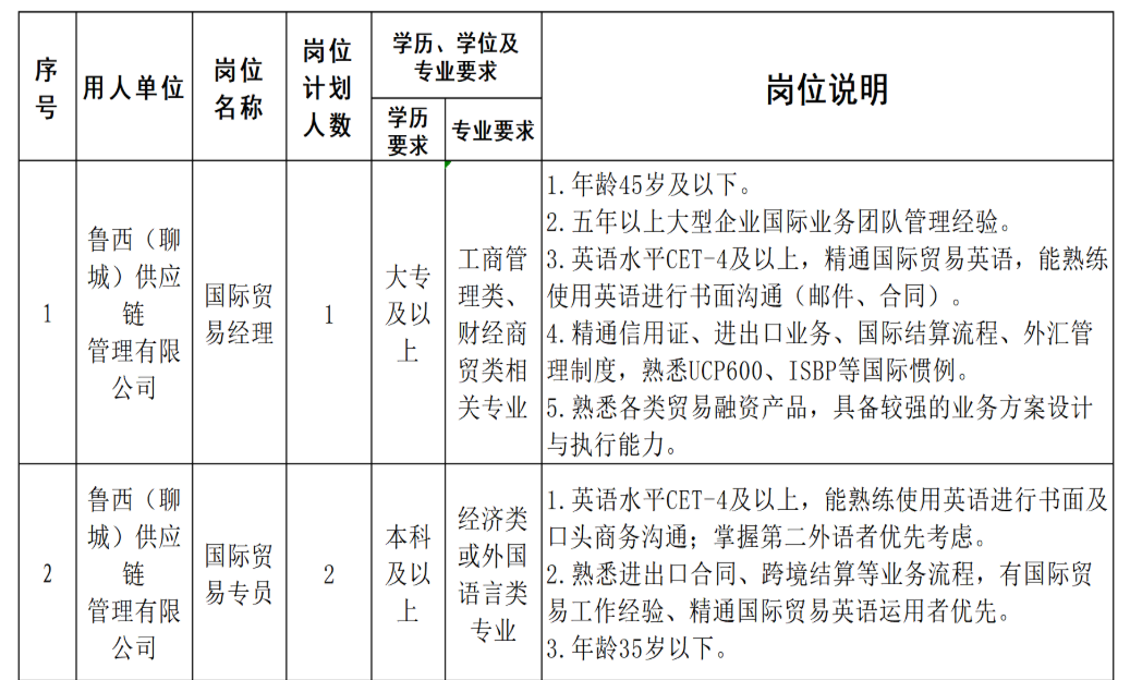 为全力推进公司各业务板块稳健发展,根据各权属子公司人员招聘需要,特委托聊城市鲁西人力资源开发有限公司面向社会公开招聘优秀人才,现将招聘岗位及事项公告如下。