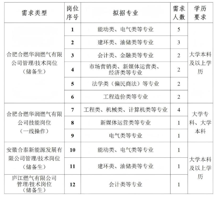 6.本次招聘解释权归合肥合燃华润燃气有限公司所有。