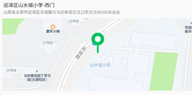太原市迎泽区山水城小学位于迎泽区长风东街复地路2号,是一所六轨制公立小学。
