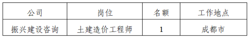 四川振兴建设咨询有限公司(以下简称“振兴建设咨询”)因业务发展需要,现面向社会公开招聘土建造价工程师,有关事项公告如下: