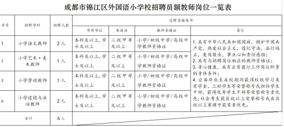 根据成都市锦江区外国语小学校发展需要,现面向社会公开招聘员额教师。本次招聘为编制外招聘,招聘的人员全部实行合同管理。