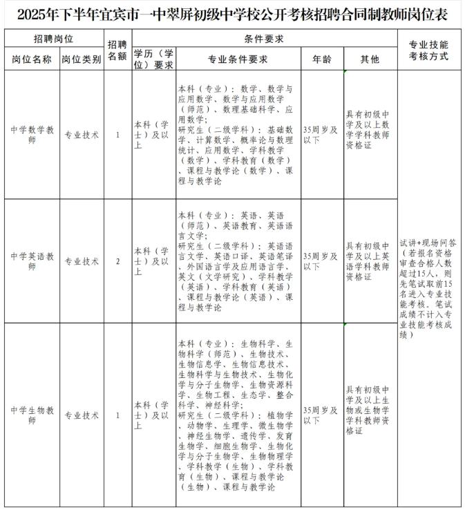 需提供资料:《2025年下半年宜宾市一中翠屏初中公开考核招聘合同制教师报考信息表》原件,身份证原件和复印件,学历、学位证原件和复印件,教师资格证原件和复印件。