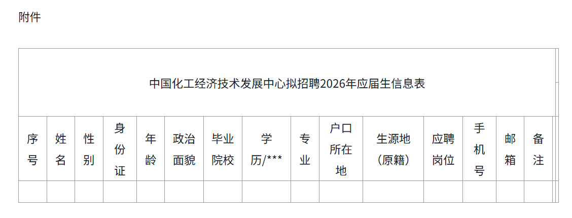附件:《中国化工经济技术发展中心拟招聘2026年应届生信息表》