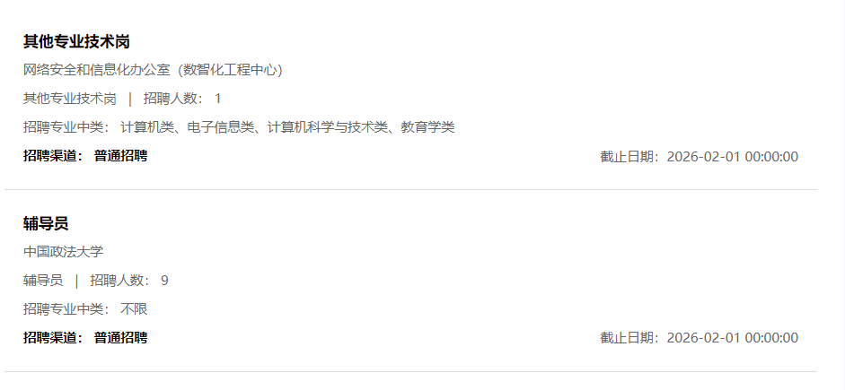 根据中国政法大学2026年度招聘计划及相关规定,现面向社会公开招聘事业编制辅导员和其他专业技术岗位人员。具体事宜公布如下: