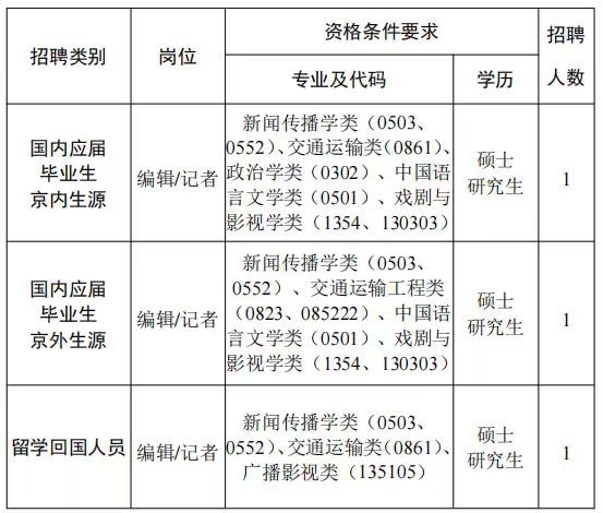 根据工作需要,中国交通报社有限公司开展2026年度公开招聘工作。现将有关事项公告如下: