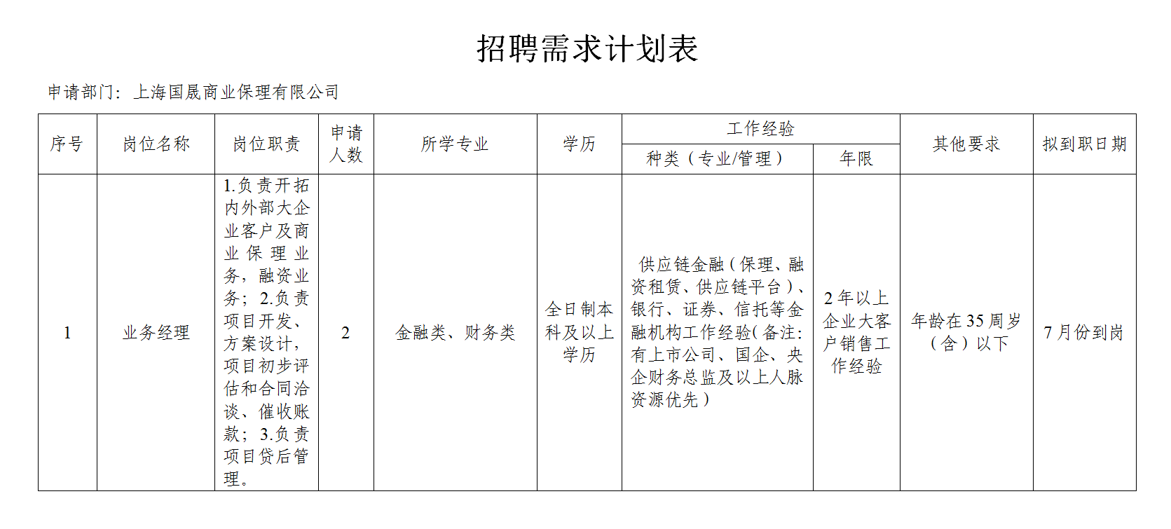 现根据公司业务发展需要,拟招聘工作人员2名。具体实施方案如下: