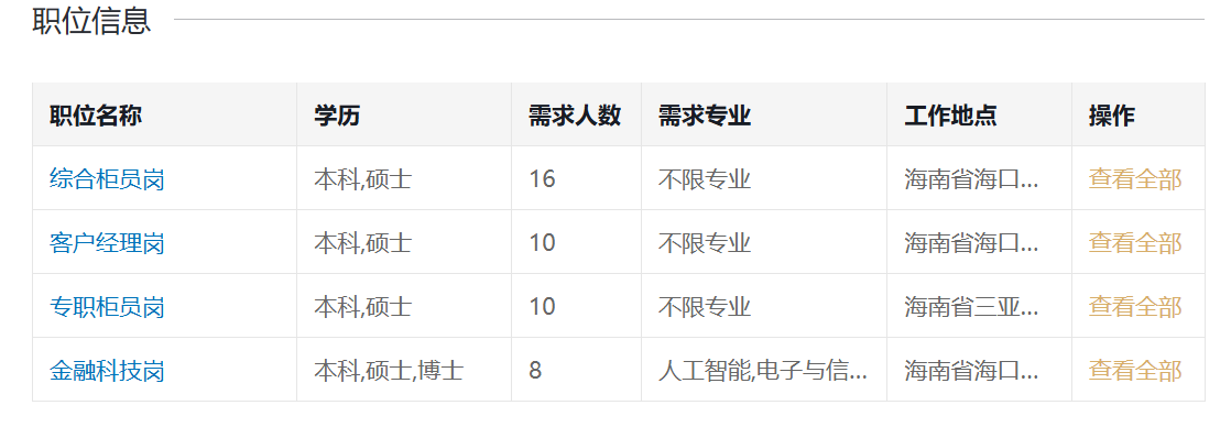 2026年校园招聘岗位分为金融科技类、市场营销类、柜面操作类共3大类岗位。岗位说明如下:
