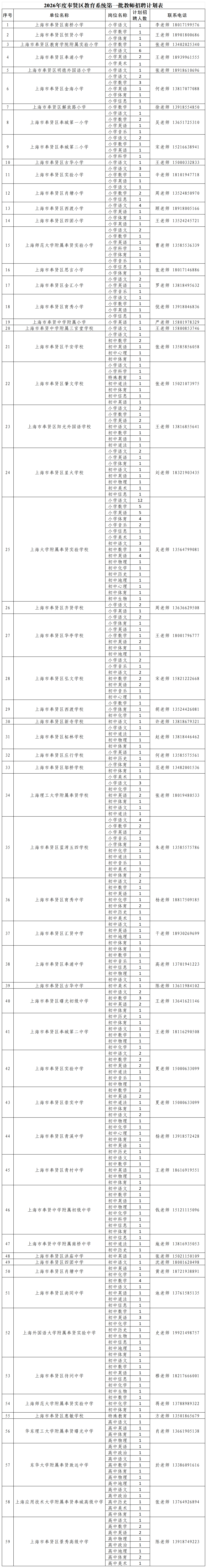 根据《上海市事业单位公开招聘人员办法》(沪人社规〔2019〕15号)的有关规定,结合本区教育事业发展需求,现发布2026年度奉贤区教育系统第一批教师招聘公告。