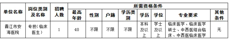 因工作需要,晋江市第二医院医共体拟面向社会公开招聘1名编外工作人员(用工形式:劳务派遣)。
