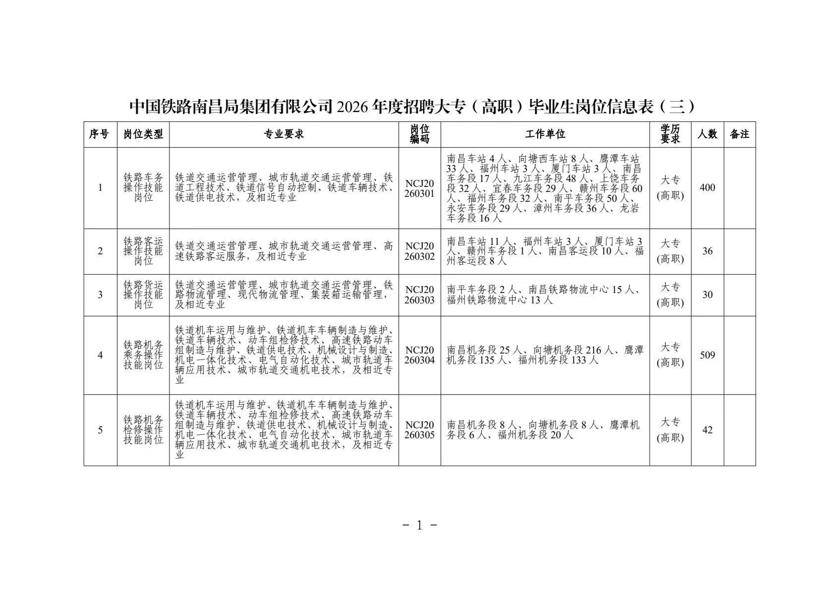 中国铁路南昌局集团有限公司根据企业发展需要,拟招聘普通高等院校大专(高职)毕业生,现将有关事项公告如下。