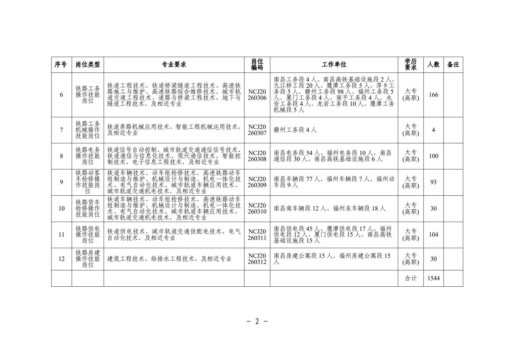 中国铁路南昌局集团有限公司2026年度招聘普通高校毕业生1544人公告