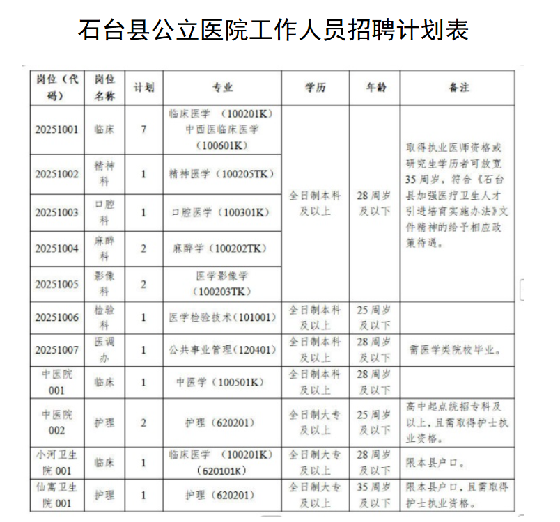 根据2025年石台县公立医院公开招聘工作人员计划的工作安排。经研究,现将有关事项公告如下: