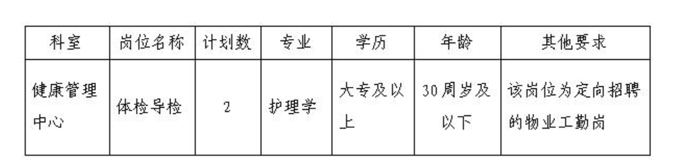 1、本次招聘人员为定向招聘的物业工勤岗,从事体检导检工作。