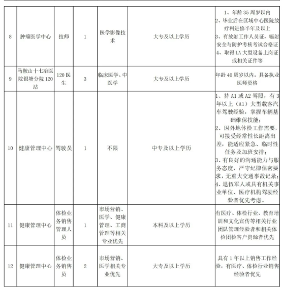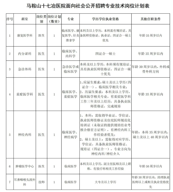 因工作需要,现公开招聘专业技术岗位,具体见《2025年马鞍山十七冶医院面向社会公开招聘专业技术岗位计划表》(附件1)。