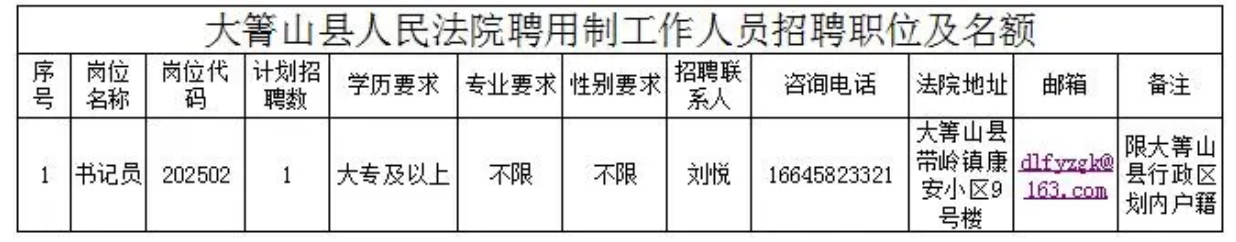 因工作需要,大箐山县人民法院面向社会公开招聘聘用制书记员1名。现将有关事项公告如下: