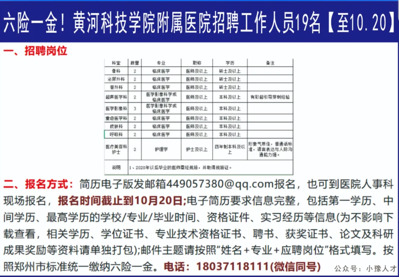 郑州市黄河科技学院附属医院招聘工作人员19名公告