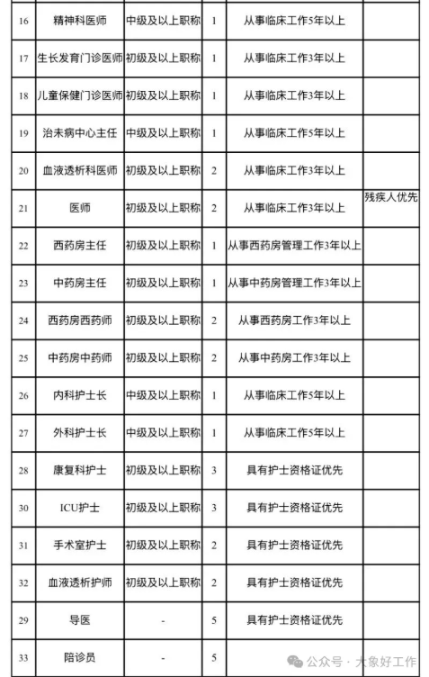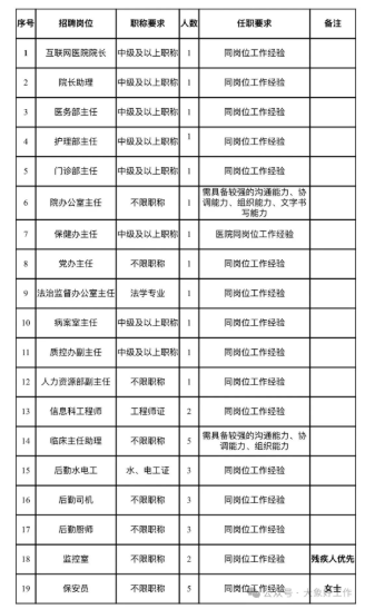 根据医院发展需要,现面向社会公开招聘以下岗位人才: