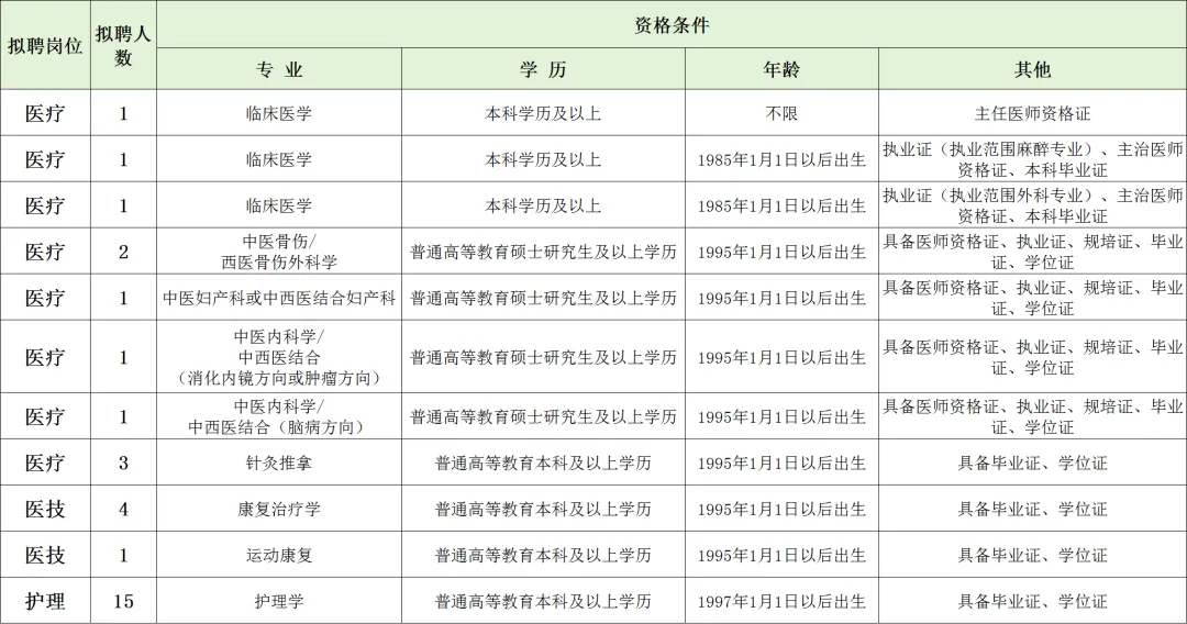 详见《焦作市中医院2025年下半年招聘用人计划表》
