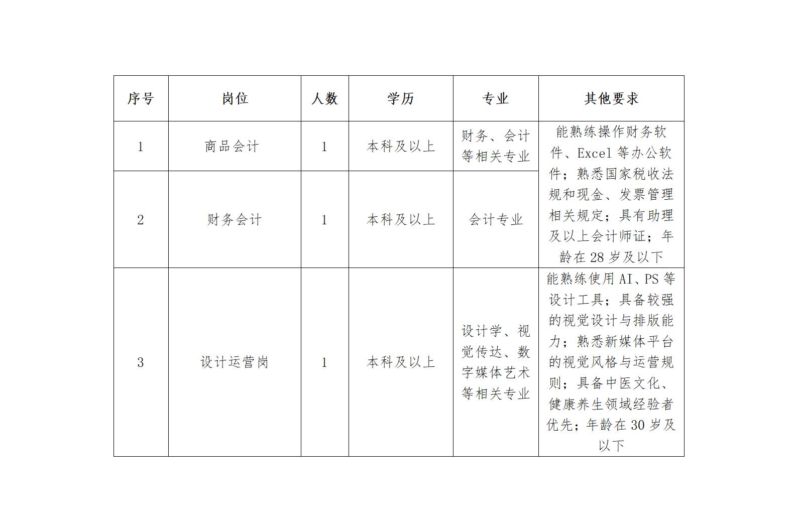 二、招聘岗位数量及要求: