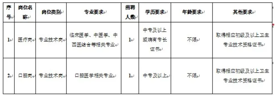 计划招聘医疗岗、口腔岗共2人,具体岗位条件如下: