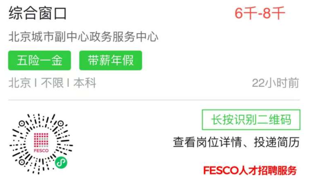 北京外企人力资源服务有限公司(以下简称“FESCO”)现受北京市政务服务管理局委托,招聘政务服务综合工作人员。现将有关事项公告如下: