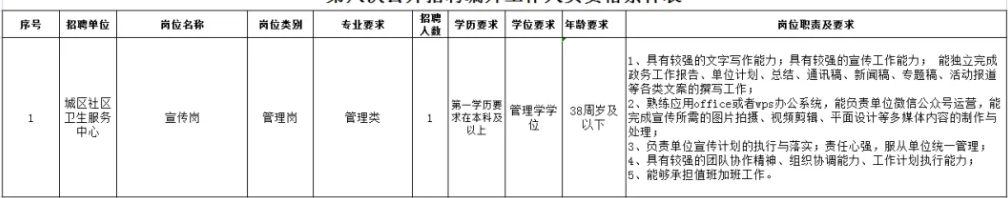北京市顺义区城区社区卫生服务中心(以下简称中心)是一级甲等综合医院,中心始建于1984年,座落于顺义城区建新南区小区内,属非营利性政府办社区卫生服务中心。中心下辖8个社区卫生服务站,担负着城区胜利及石园街道的基本医疗和公共卫生服务。根据我中心发展需要,为加快人才队伍建设,优化人力资源结构,现面向社会公开招聘编外人员,具体事项如下:
