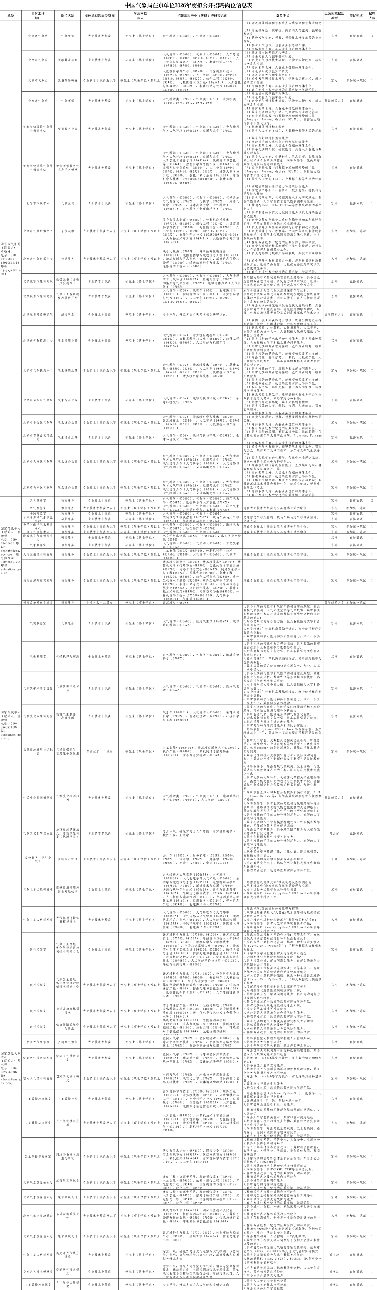 招考人数、具体职位、考试类别、资格条件等详见《中国气象局在京单位2026年度拟公开招聘岗位信息表》(以下简称《岗位信息表》)。